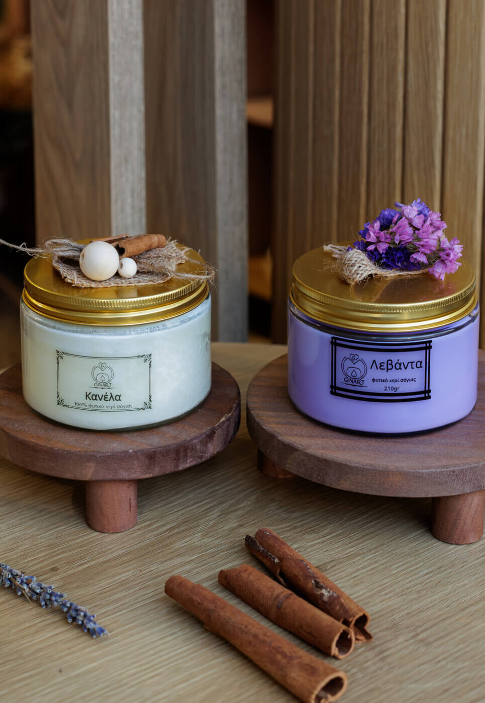 Τα κεριά Ginart είναι χειροποίητα και φτιαγμένα από 100% φυτικό κερί σόγιας. Τα αρωματικά έλαια προέρχονται από φυτικά συστατικά και είναι εξαιρετικής ποιότητας. Τα δοχεία τους είναι επαναχρησιμοποιούμενα αφού καθαρίζονται εύκολα με ζεστό νερό και σαπούνι. Είναι μη τοξικά και κατάλληλα για παιδιά, κατοικίδια και γυναίκες σε κύηση.